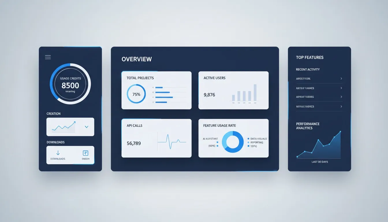 조회 시점 기준으로 사용 크레딧, 최근 작업, 업로드, 다운로드 등 주요 지표를 한눈에 볼 수 있습니다. 각 항목별 증감률까지 함께 제공되어, 하루·한 달 단위로 변화 추이를 쉽게 파악할 수 있어요.